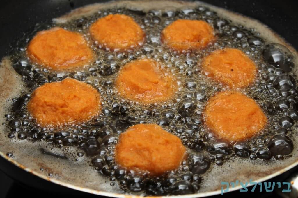 - מחממים שמן במחבת לחצי גובה, בידיים רטובות יוצרים לביבות ומכניסים אותם אחת, אחת ומחבת. מטגנים 3-2 דקות עד שהחלק התחתון של הלביבה ניהיה שחום והופכים ומטגנים עוד 2 דקות עד שהלביבה זהובה משני הצדדים.